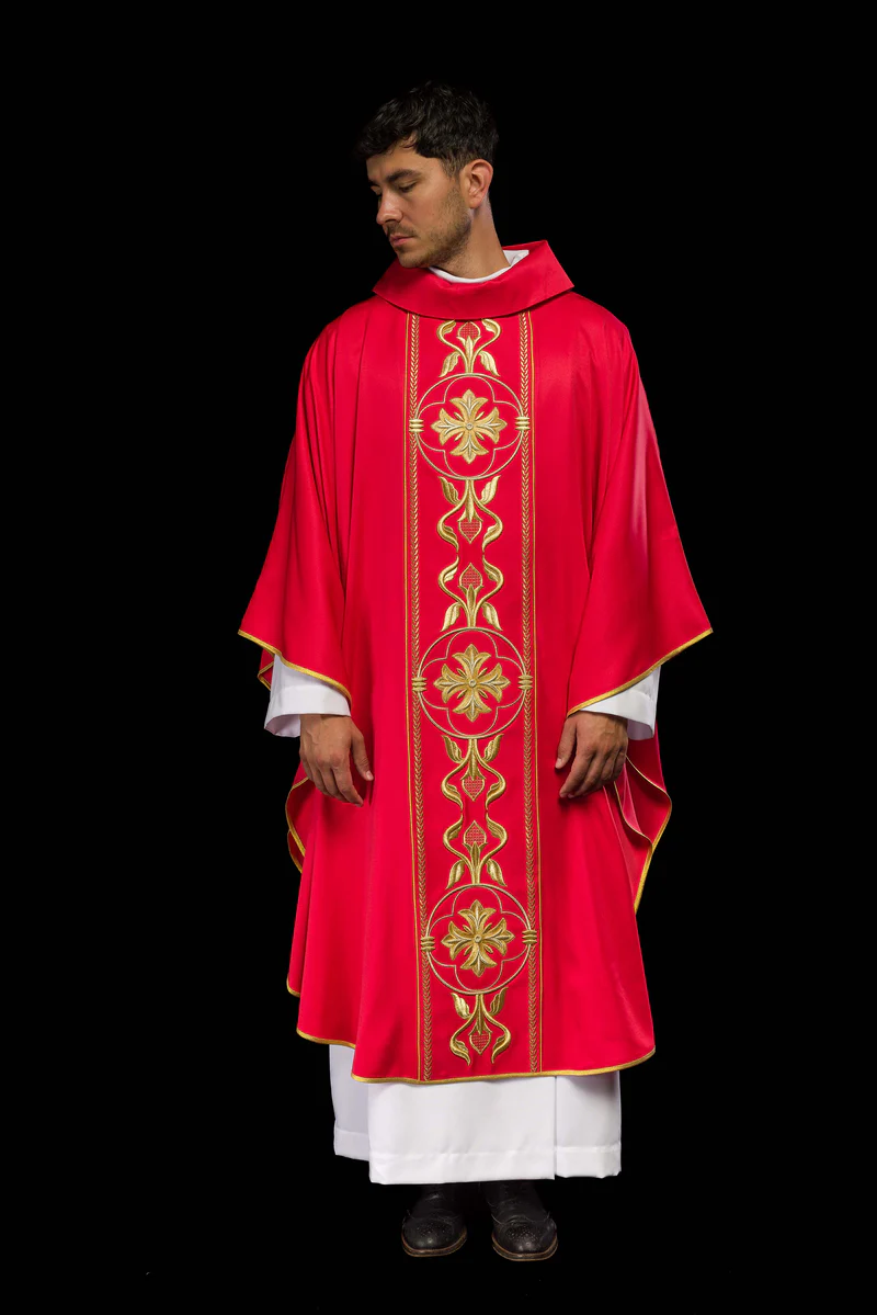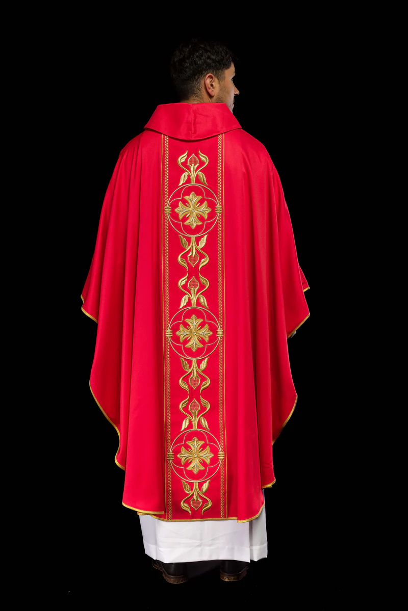 Czerwony ornat z ozdobnym pasem ze stułą wewnętrzną w komplecie