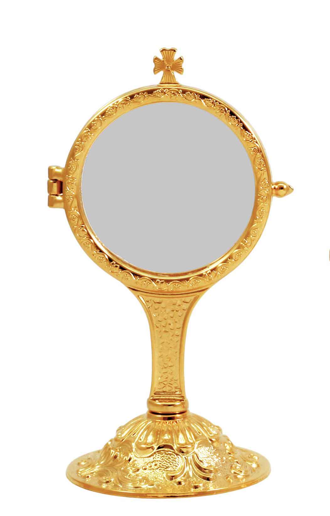 Prosta forma wykonania włoskiego producenta. Monstrancja złocona 24-karatowym złotem. Starannie wykonana.