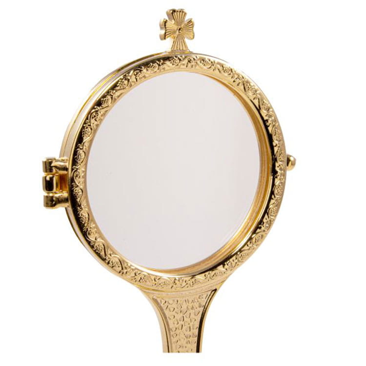 Dzwonek poczwórny mosiężny, Wysokiej jakości wykonanie (odlewy mosiężne polerowane) oraz wspaniały dźwięk to zalety tego dzwonka liturgicznego. Wymiary: - szerokość: 19 cm - wysokość: 9 cm - średnica dzwonka: 6,5 cm