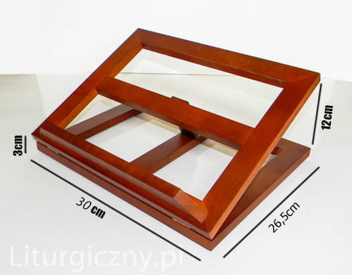 Mały pulpit pod mszał, drewniany stojak pod Biblię; w kolorze ciemnym.