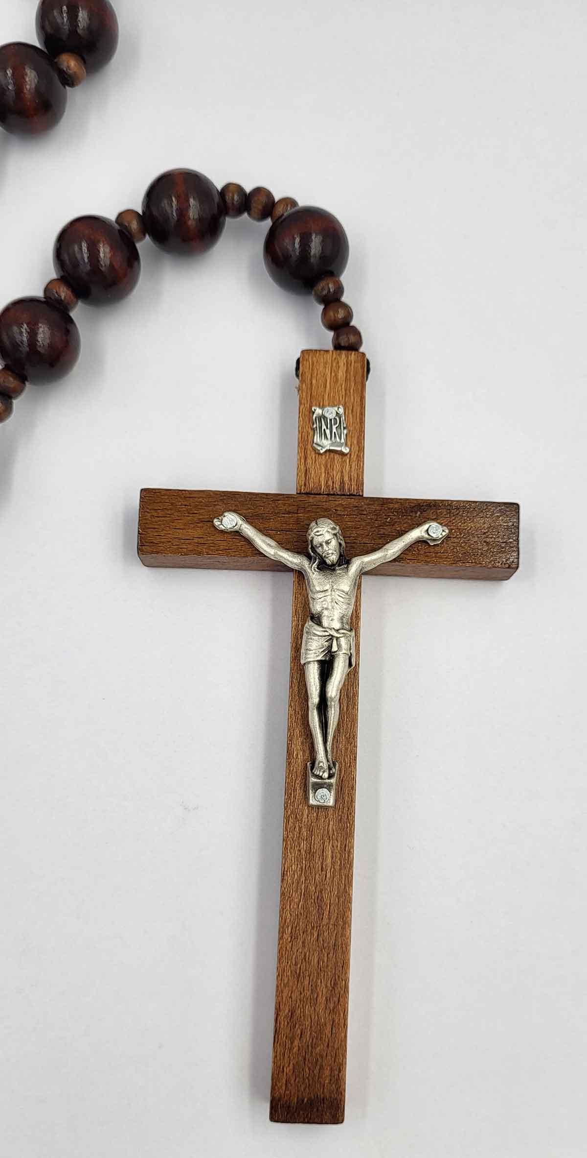 - kolor ciemny długość całkowita 98 cm; paciorki różańca ok. 2 cm; krzyżyk 16 x 8,5 cm