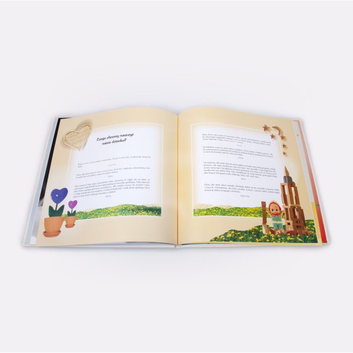 Elegancki, uroczy, przepięknie zilustrowany i mądry album, który możemy podarować rodzinie cieszącej się narodzinami dziecka. W środku znajdziemy miejsca na fotografie, wpisy najważniejszych dat oraz opis osiągnięć rosnącej pociechy. Autorka zadbała również o przypomnienie rodzicom etapów rozwoju dziecka w pierwszym roku życia, zaproponowała szereg zabaw, dzięki którym maluch uczy się i jednocześnie zacieśnia swoją więź z najbliższymi. Album ten to naprawdę wspaniała, rodzinna pamiątka.