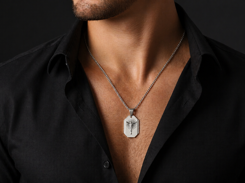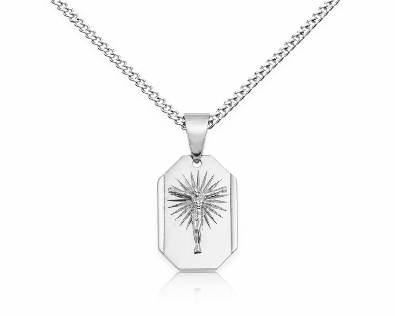Medalik z wizerunkiem Jezusa na łańcuszku.