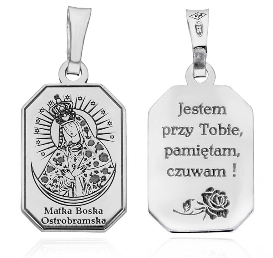 Medalik srebrny rodowany Matka Boska Ostrobramska
