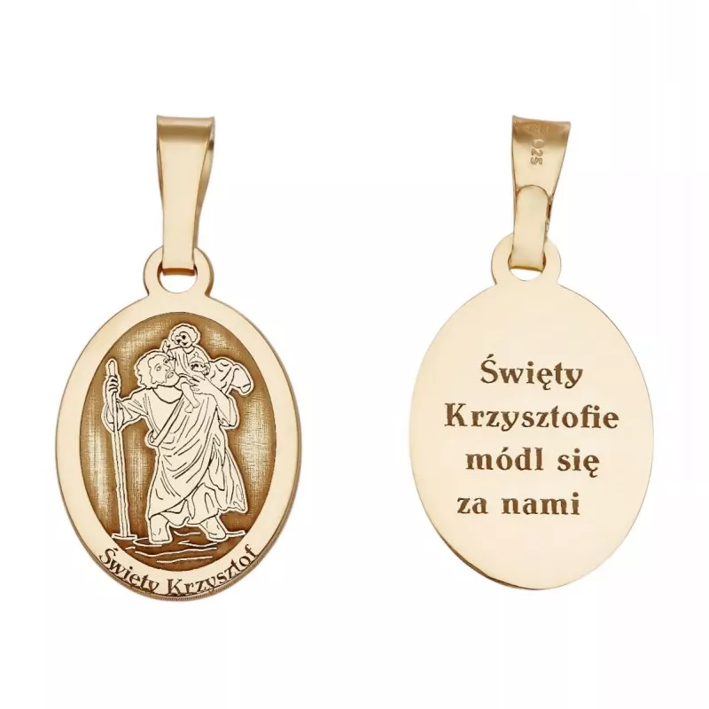 Medalik dwustronny grawerowany. Wysokiej jakości produkt polski, precyzyjnie i trwale wykonany.