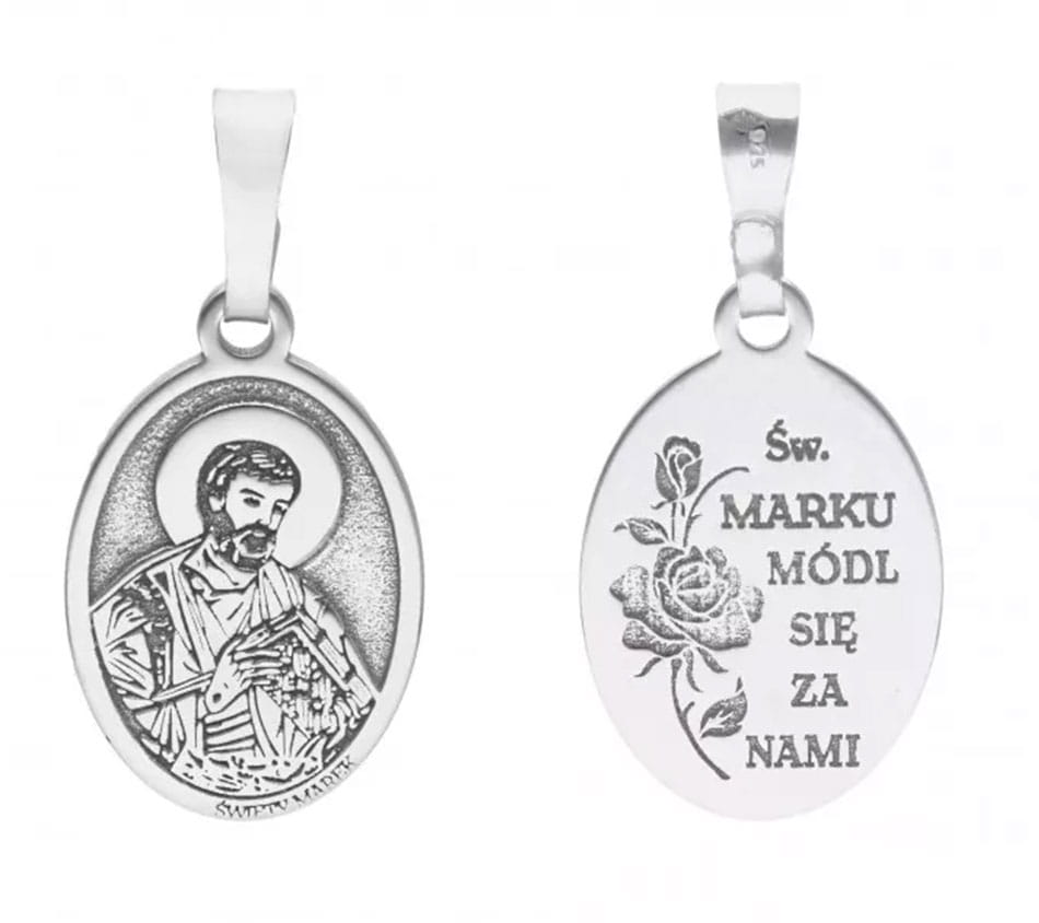 Medalik srebrny rodowany - Święty Marek