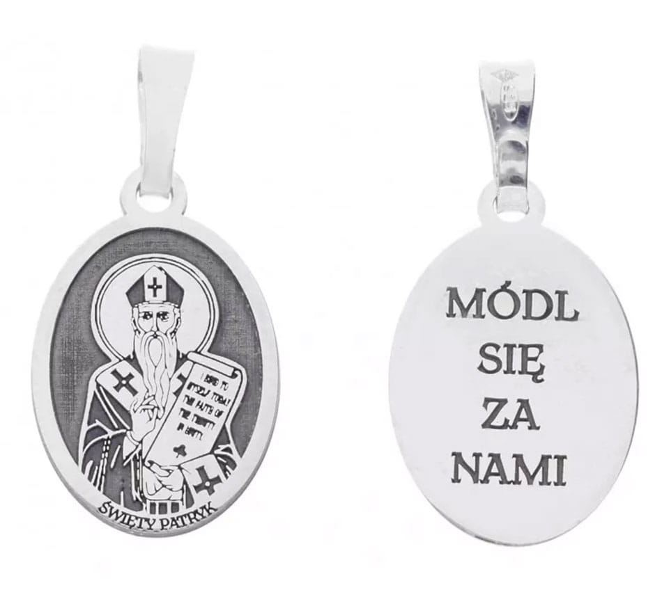 Medalik srebrny rodowany - Święty Patryk