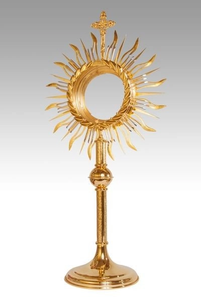 Naczynie liturgiczne używane podczas Mszy Św. oraz procesji, wykonane z mosiądzu, pozłacane 24 karatowym złotem.