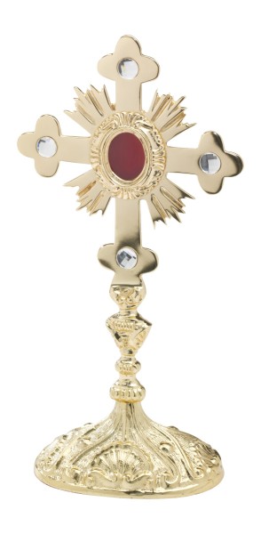 Relikwiarz mosiężny złocony 28 cm