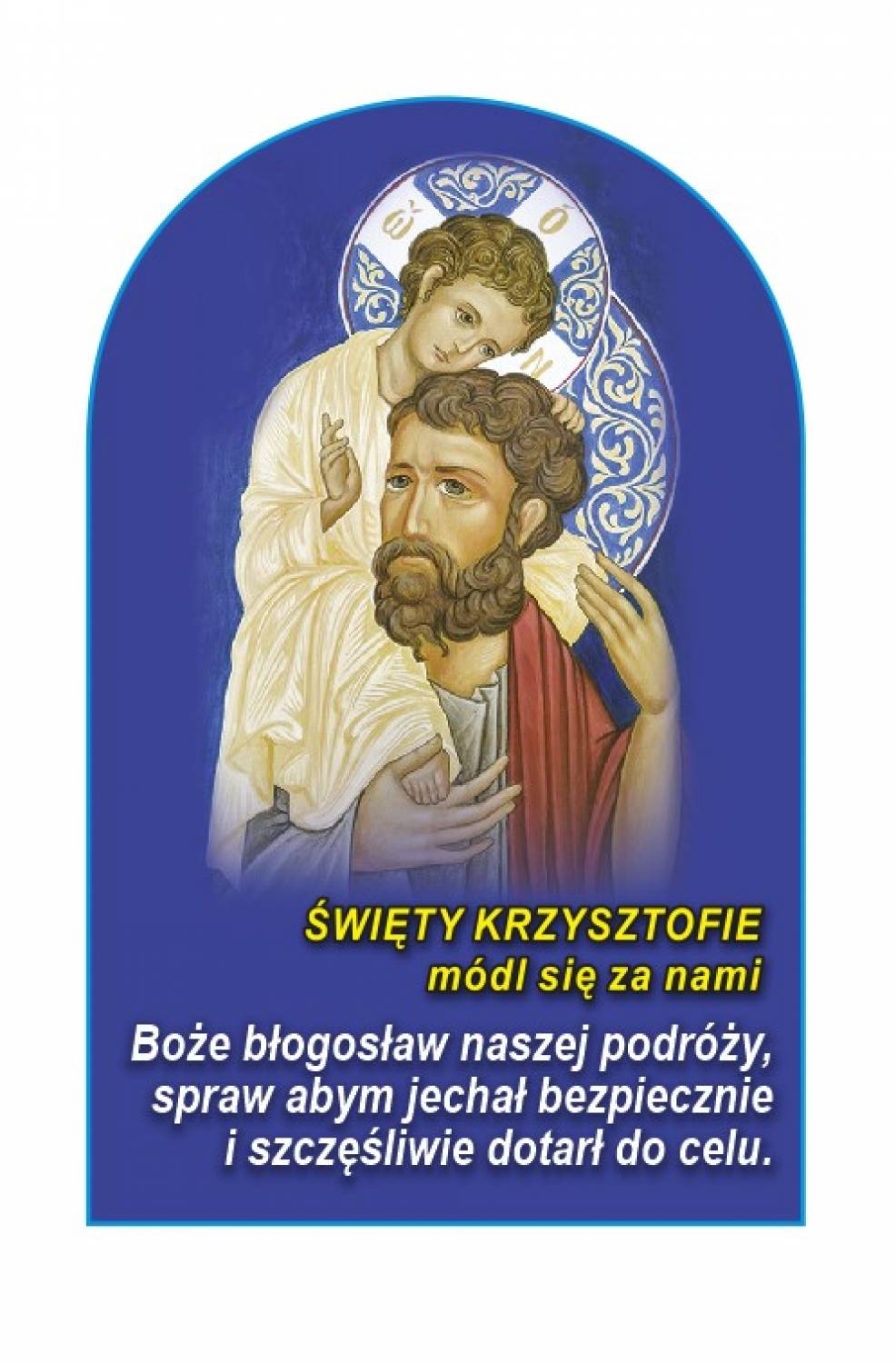 Papierowa naklejka samoprzylepna z wizerunkiem świętego Krzysztofa.