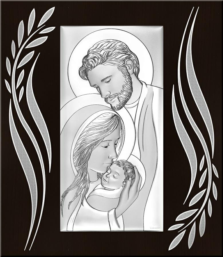 Srebrny obraz w serduszku ze Świętą Rodziną W/6650M.