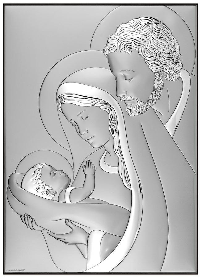 Srebrny obraz w serduszku ze Świętą Rodziną W/6650M.