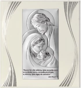 Święta Rodzina - obraz ze srebra 6380SFWP na białym drewnie, z cytatem