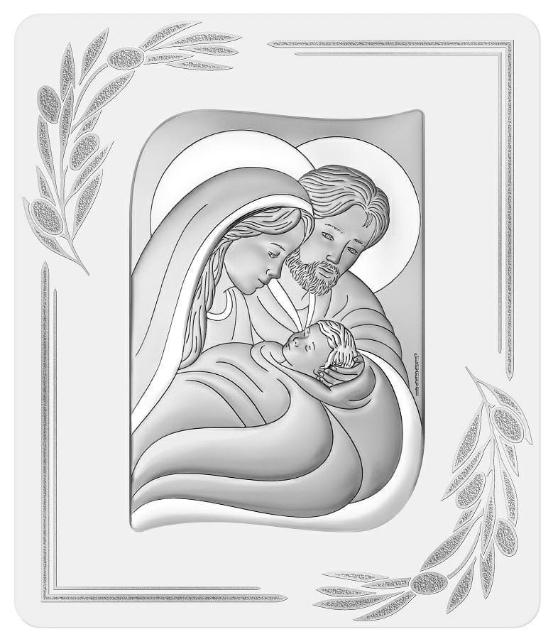 Srebrny obraz w serduszku ze Świętą Rodziną W/6650SP.