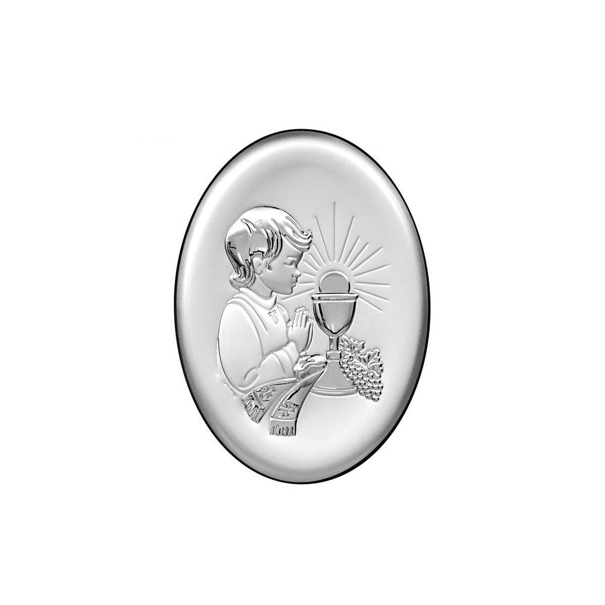 Prezentujemy śliczny, posrebrzany prezent na komunię dla CHŁOPCA jakim jest obrazek komunijny. Srebrny obrazek to dzieło włoskiej firmy Beltrami,wykonany jest z niezwykłą precyzją i dbałością o szczegóły, co zapewnia wyjątkowość naszego produktu. Obrazek stanowi idealny upominek tej wyjątkowej okazji jaką jest Pierwsza Komunia.