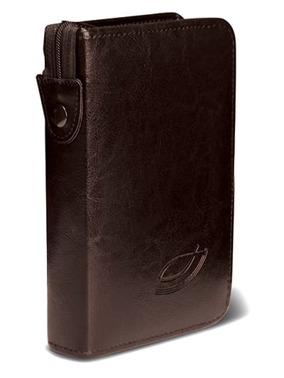Oprawa na Biblię pozwoli zachować ją w perfekcyjnym stanie przez lata. Oprawa wykonana z wysokiej jakości skóry ekologicznej, zapinana na suwak, doskonale chroni przed zabrudzeniem, uszkodzeniem i wilgocią. Idealnie dopasowana do formatu wydawanej przez Edycję Świętego Biblia z "rybką".
