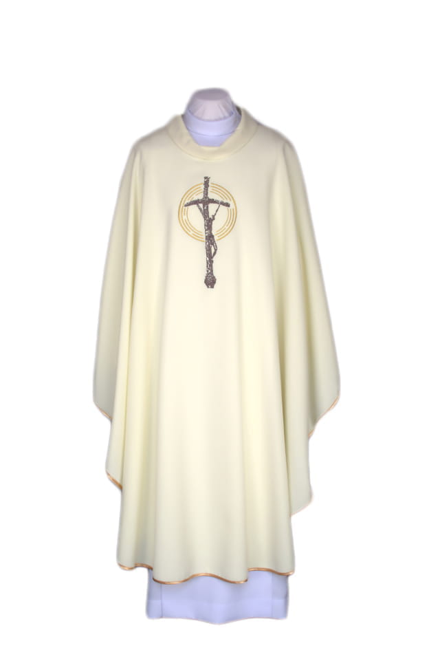 Ornat z haftowaną symboliką; Krzyż Papieski.