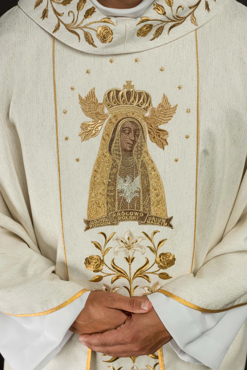 Ornat z haftem - Matka Boża Licheńska ze stułą wewnętrzną w komplecie