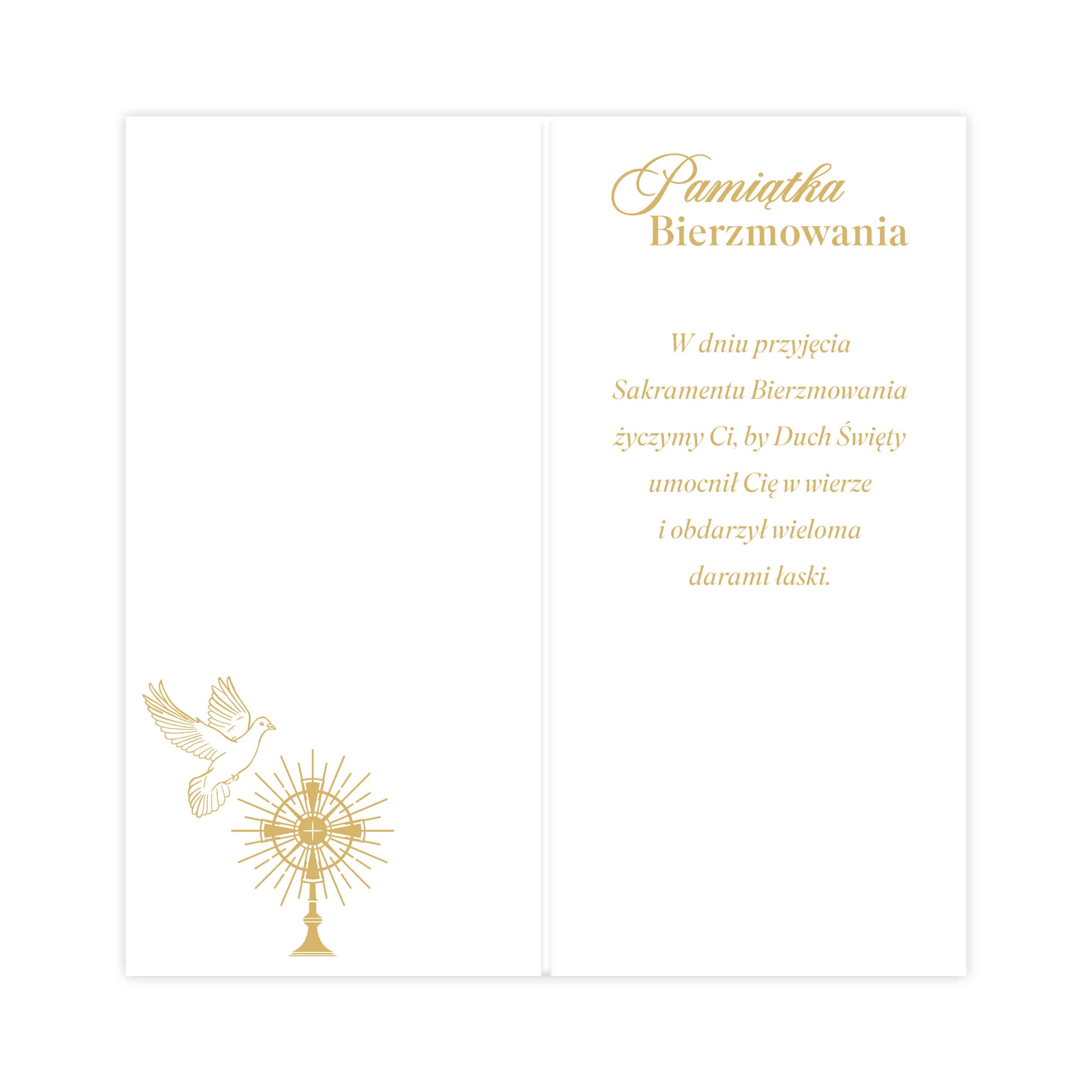 Kartka wykonana z eleganckiego, wysokogatunkowego papieru z delikatnymi złoceniami.