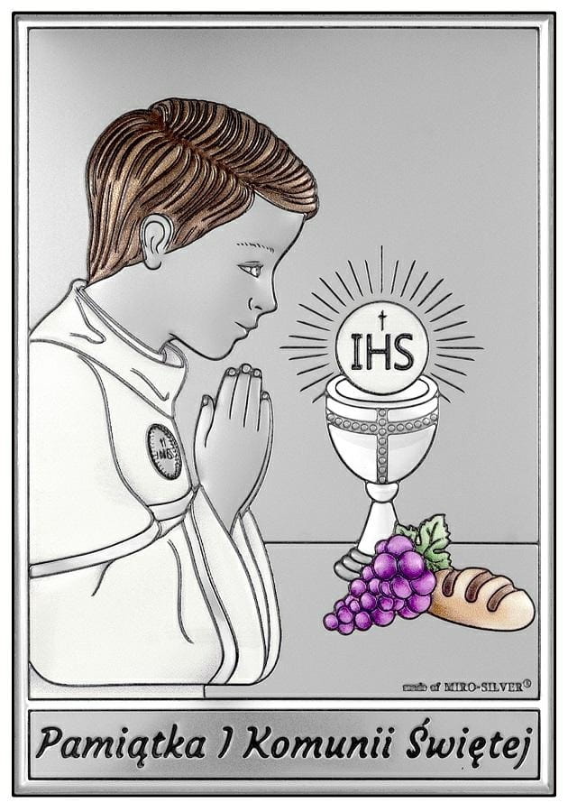 Istnieje możliwość wykonania graweru. Cena 1 zł za znak / literkę. Płytka grawerska mocowana z tyłu obrazka. W razie pytań zapraszamy do kontaktu: sklep@liturgiczny.pl lub po numerem telefonu 603 190 513