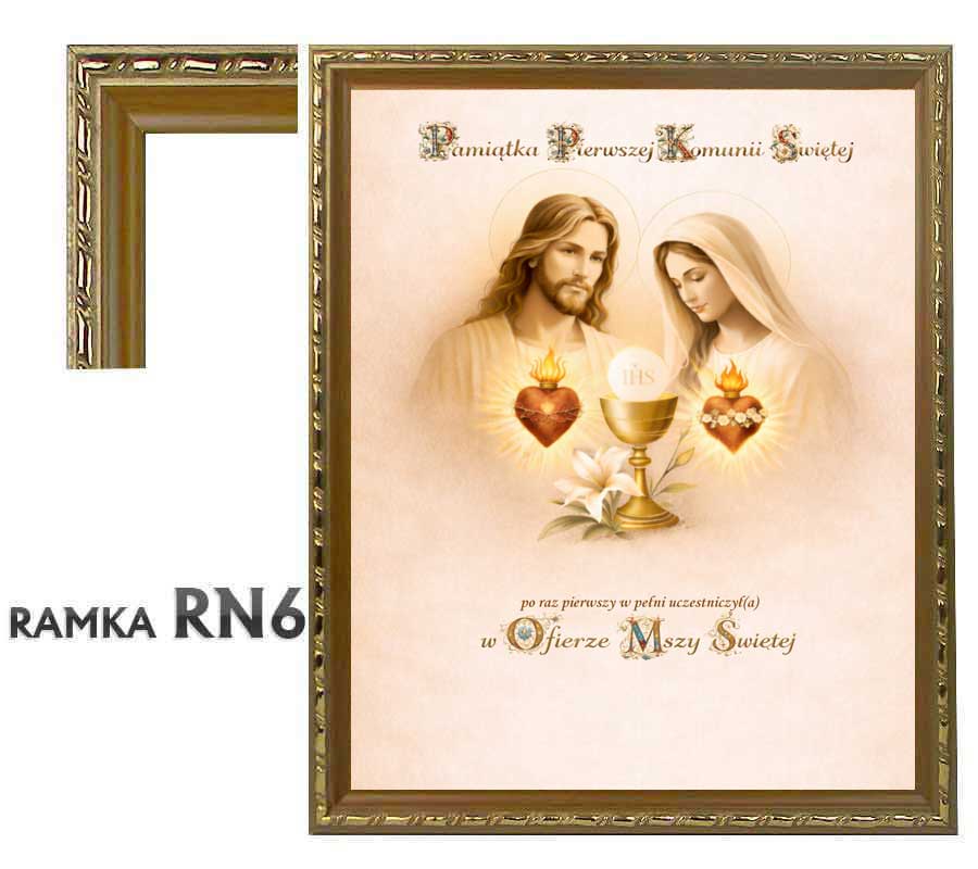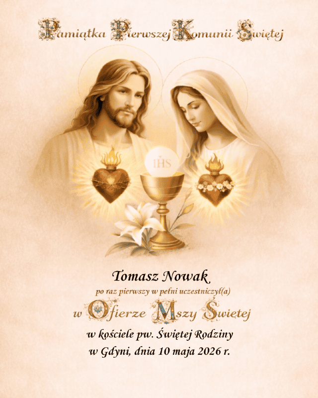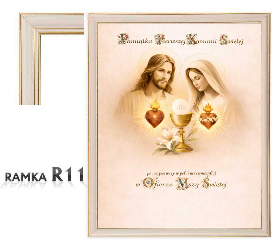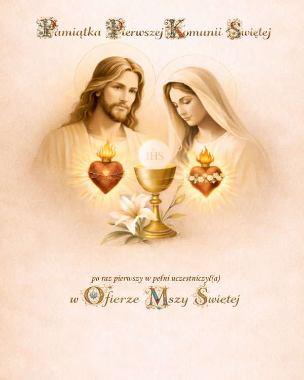 Pamiątkowy obrazek dla dzieci komunijnych z wizerunkiem Najświętszego Serca Pana Jezusa