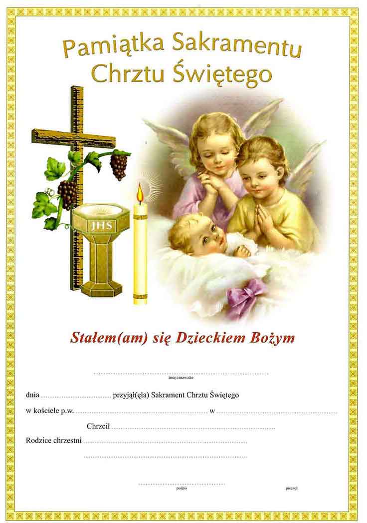 Dyplom - pamiątka Sakramentu Chrztu Świętego