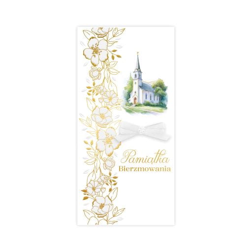 Kartka wykonana z eleganckiego, wysokogatunkowego papieru z delikatnymi złoceniami.