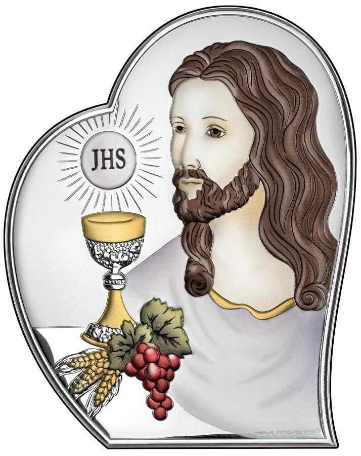 Obrazek wysokiej jakości, produkcji włoskiej. Przygotowany z dbałością o detale. Dodatkowo wzbogacony wizualnie elementami kolorowymi, emaliowanymi. Płyta posrebrzana mocowana na drewnie, możliwość postawienia i powieszenia.