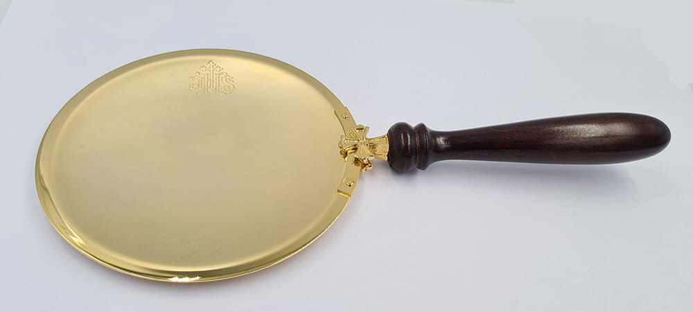 Patena mosiężna złocona 24 karatowym złotem. Wysokiej jakości produkt polski.