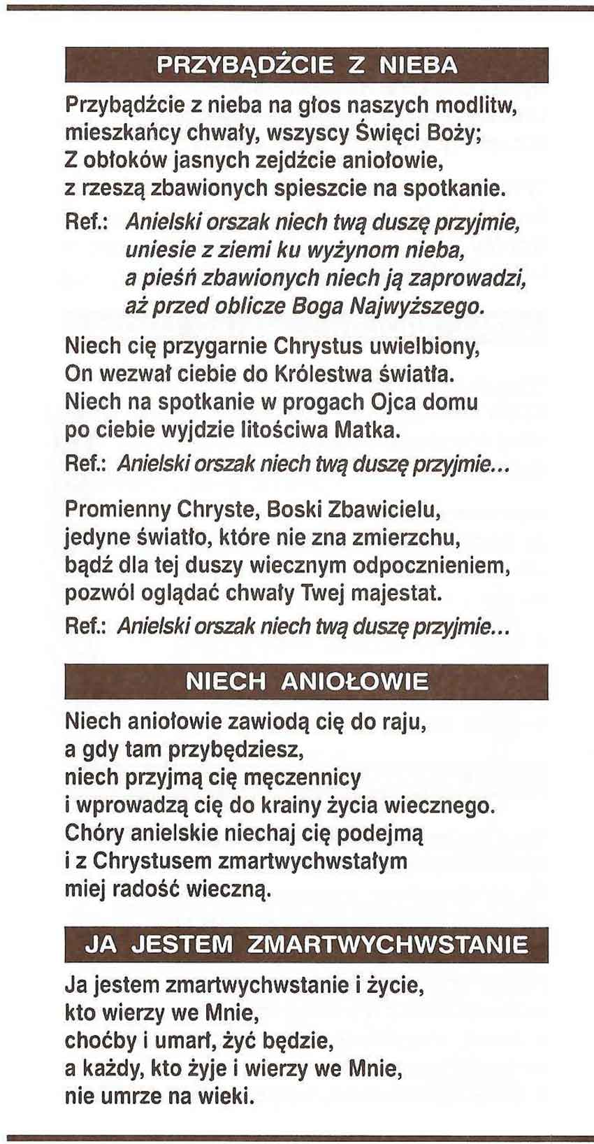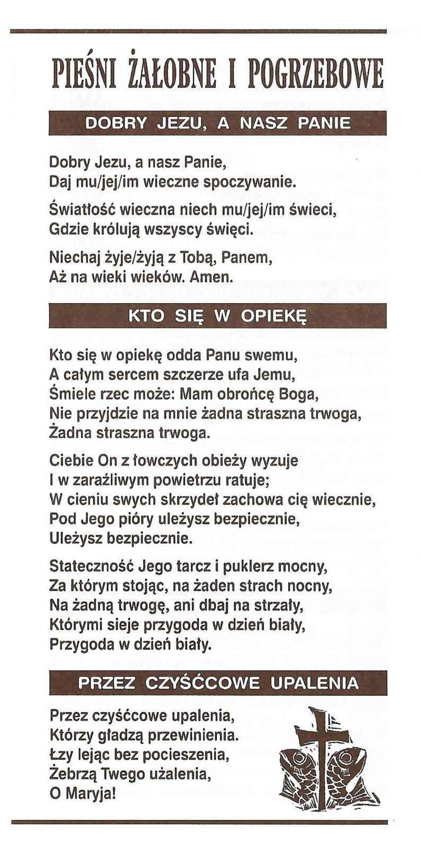 Spis pieśni: Dobry Jezu, a nasz Panie, Kto się w opiekę, Przez czyśćcowe upalenia, Racz wiekuiste dać odpoczywanie,