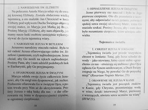 Dodatkowo została uzupełniona o informacje na temat sanktuarium w Pompejach, a także znajdziemy w niej modlitwy takie jak: