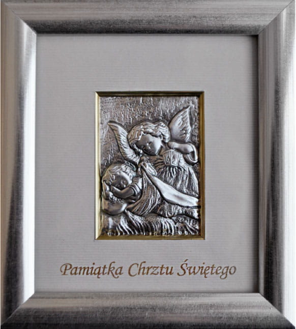 Obrazek srebro 925 Pamiątka Chrztu aniołki z latarenką