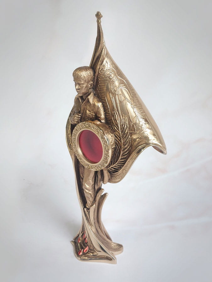 Relikwiarz odlewany, wykonany z brązu z wizerunkiem świętego Jose Sanchez del Rio