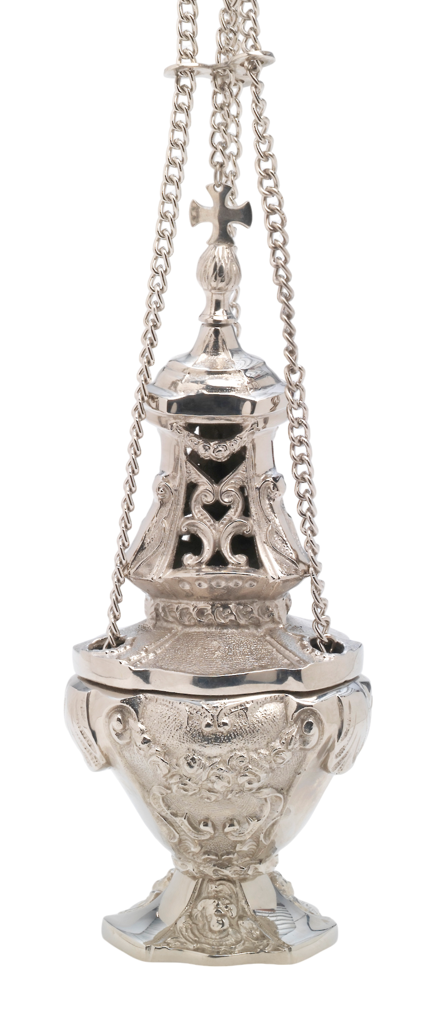 Trybularz w kolorze srebrnym, mosiężny, odlewany.