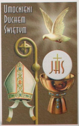 Krzyż metalowy przedstawiający Trójcę Świętą. Interesująca forma, wyraźna dbałość o szczegóły.Kolor stare złoto. Z tyłu napis pamiątka bierzmowania. W cenie krzyżyka rzemyk. Wysokość 8,5 cm. Produkt często kupowany na pamiątkę Sakramentu bierzmowania...