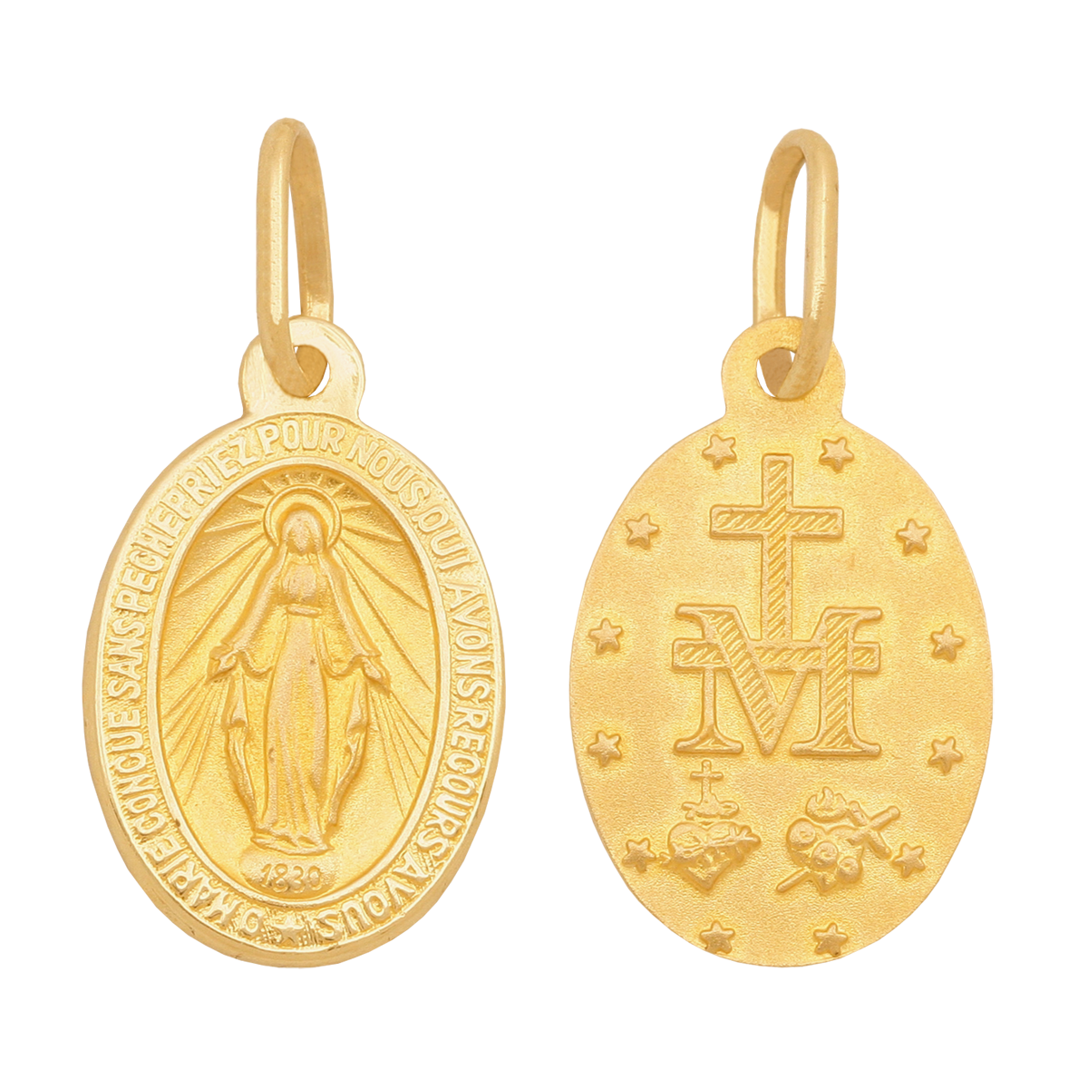 Medalik ze złota o próbie 585 z wizerunkiem Matki Bożej Niepokalanej.