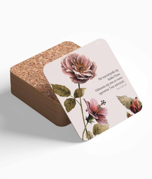 Podstawka korkowa pod kubek o wymiarach 10cm x 10cm.