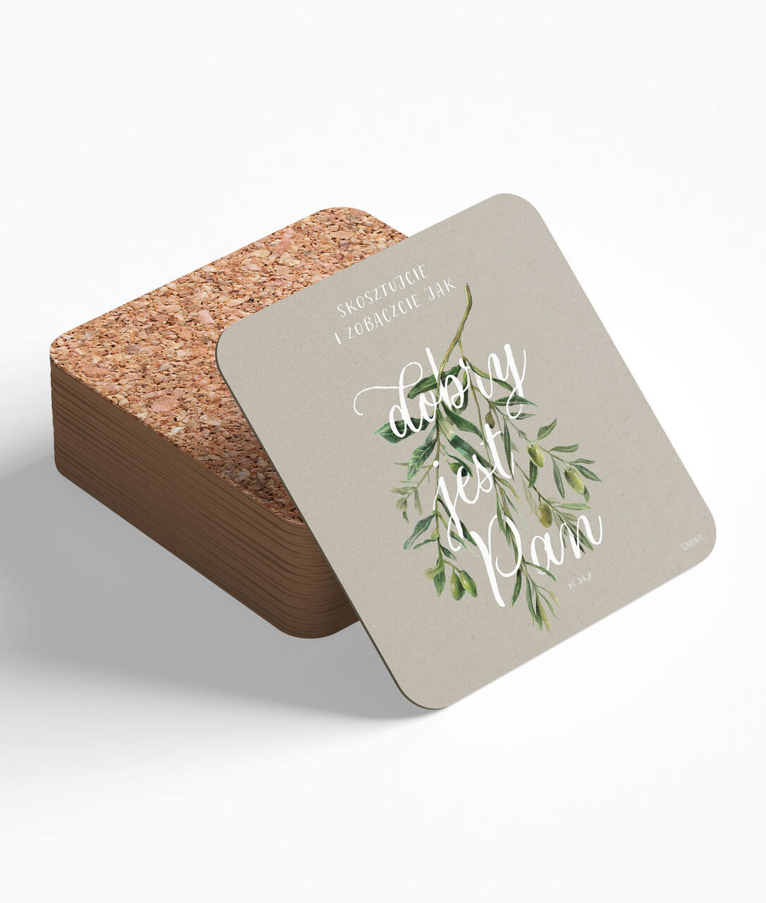 Podstawka korkowa pod kubek o wymiarach 10cm x 10cm.
