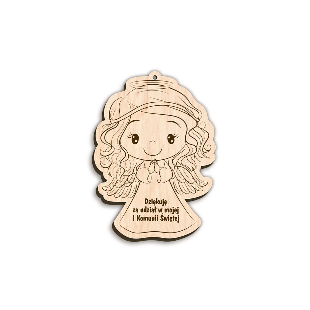 Drewniany magnes z wyjątkową grafiką to idealna forma podziękowania dla gości. Mały gadżet o niezwykłej wartości sentymentalnej sprawi, że każdy z zaproszonych gości poczuje się doceniony a wyjątkowa uroczystość Pierwszej Komunii Świętej zostanie odpowiednio zaakcentowana. Wyrazista grafika oraz możliwość wyboru spośród kilku dostępnych wzorów sprawia, że każdy znajdzie magnes idealnie dostosowany do uroczystości. Magnes przypominający kształtem aniołka - dziewczynkę.
