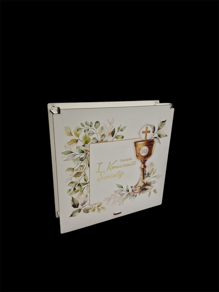 Pamiątka I Komunii Świętej - pudełko drewniane zdobione