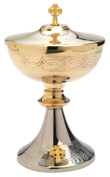 Naczynie liturgiczne wykonane z mosiądzu, złocone 24 karatowym złotem i niklowane.