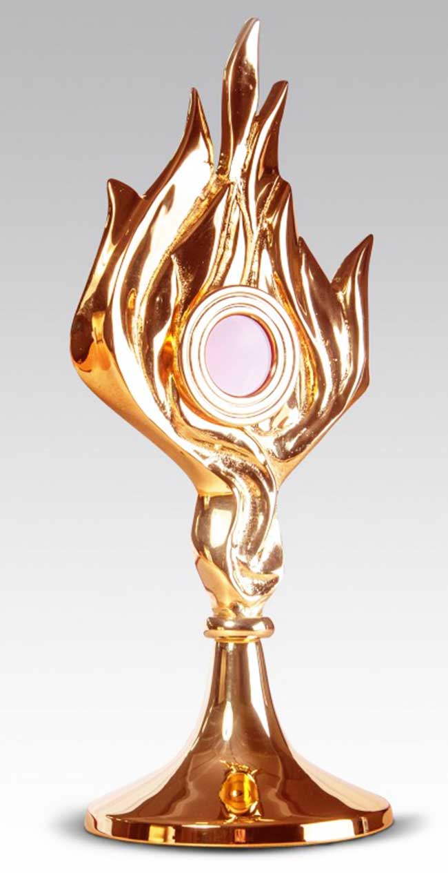Relikwiarz mosiężny złocony wysokość 32 cm 019