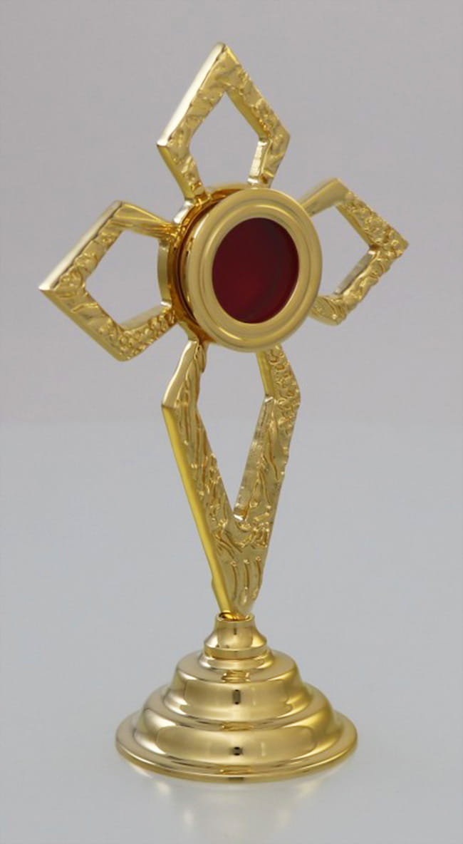 Wysokiej jakości produkt polski. Relikwiarz mosiężny, złocony 24 karatowym złotem.