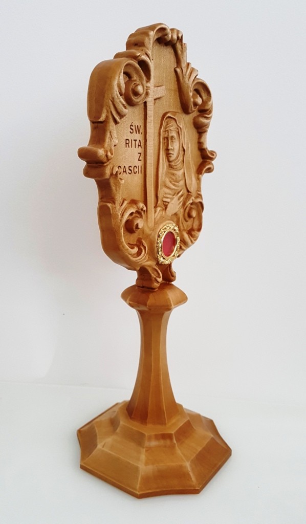 Wysokiej jakości produkt polski, relikwiarz w całości wykonany z drewna lipowego z dbałością o detale.