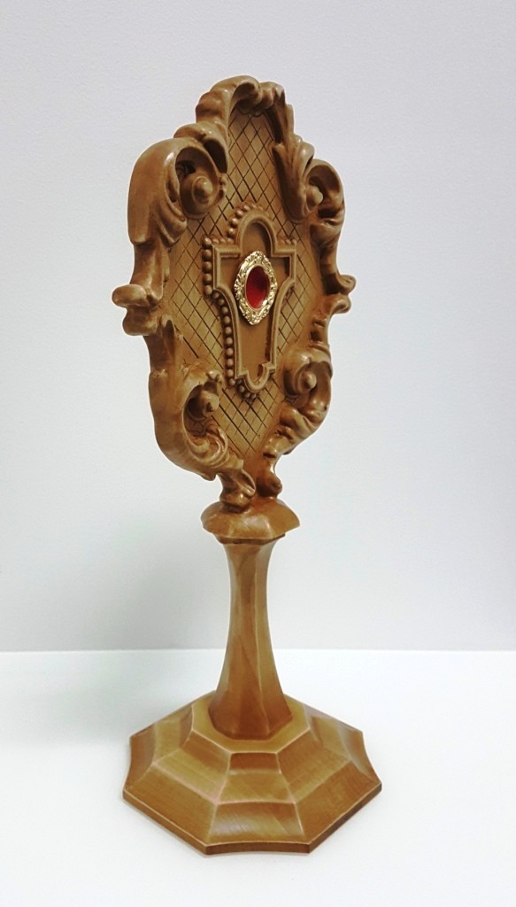 Wysokiej jakości produkt polski, relikwiarz w całości wykonany z drewna lipowego z dbałością o detale.