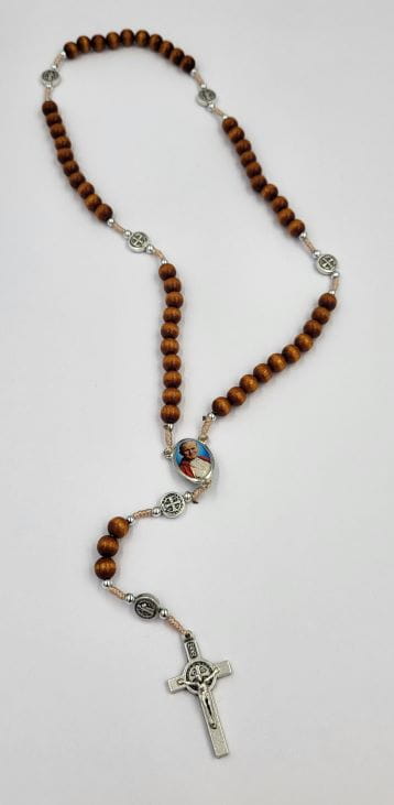 Różaniec z medalami i krzyżem Św. Benedykta - różne kolory.