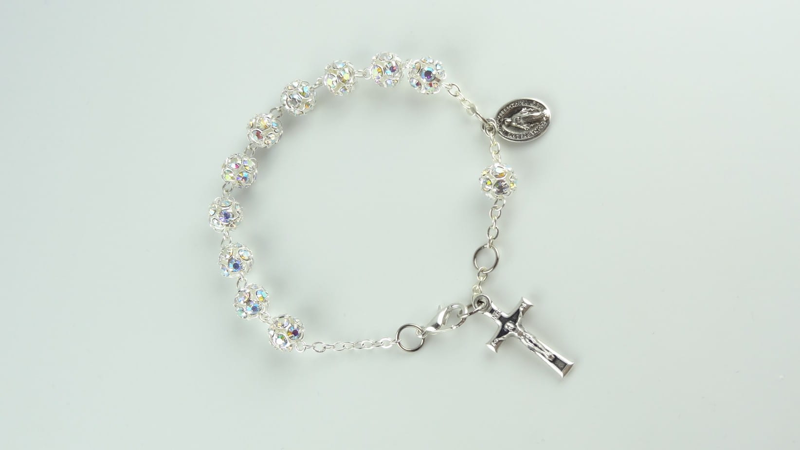 Przepiękna ozdoba. Zastanawiałam się między wersją z dużymi oczkami za 60zł i tą za 45zł. A,że do sklepu stacjonarnego mam niedaleko to osobiście udałam się wybrać ,który. Kupowałam z myślą o dziewczynce jako prezent komunijny. Zdecydowanie ta za 45zl jest delikatniejsza (ale wcale nie drobna) i lepiej prezentuje się na ręce. Zresztą dla siebie też wybrałabym tą wersję. Na ręce wygląda jak bardzo droga bransoletka. Kryształki w kolorze szampańskim nie są różnokolorowe tylko jakby białe a mienią się kolorami pod światło. Jestem bardzo zadowolona a obdarowana dziewczynka była zachwycona ,jej mama zresztą mówiła ,że sama by chętnie chodziła w tej bransoletce.