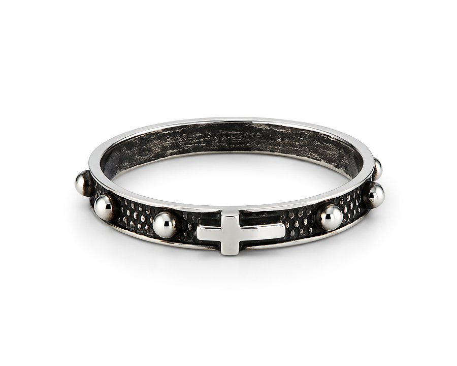 Przed wrzuceniem do koszyka wybierz rozmiar. Różaniec - obrączka - srebrny, oksydowany; próba srebra 925 waga do 5 g, Poniższa tabela przedstawia rozmiary wraz ze średnicą wewnętrzną różańca - obrączki oraz terminem wysyłki (aktualne stany magazynowe...