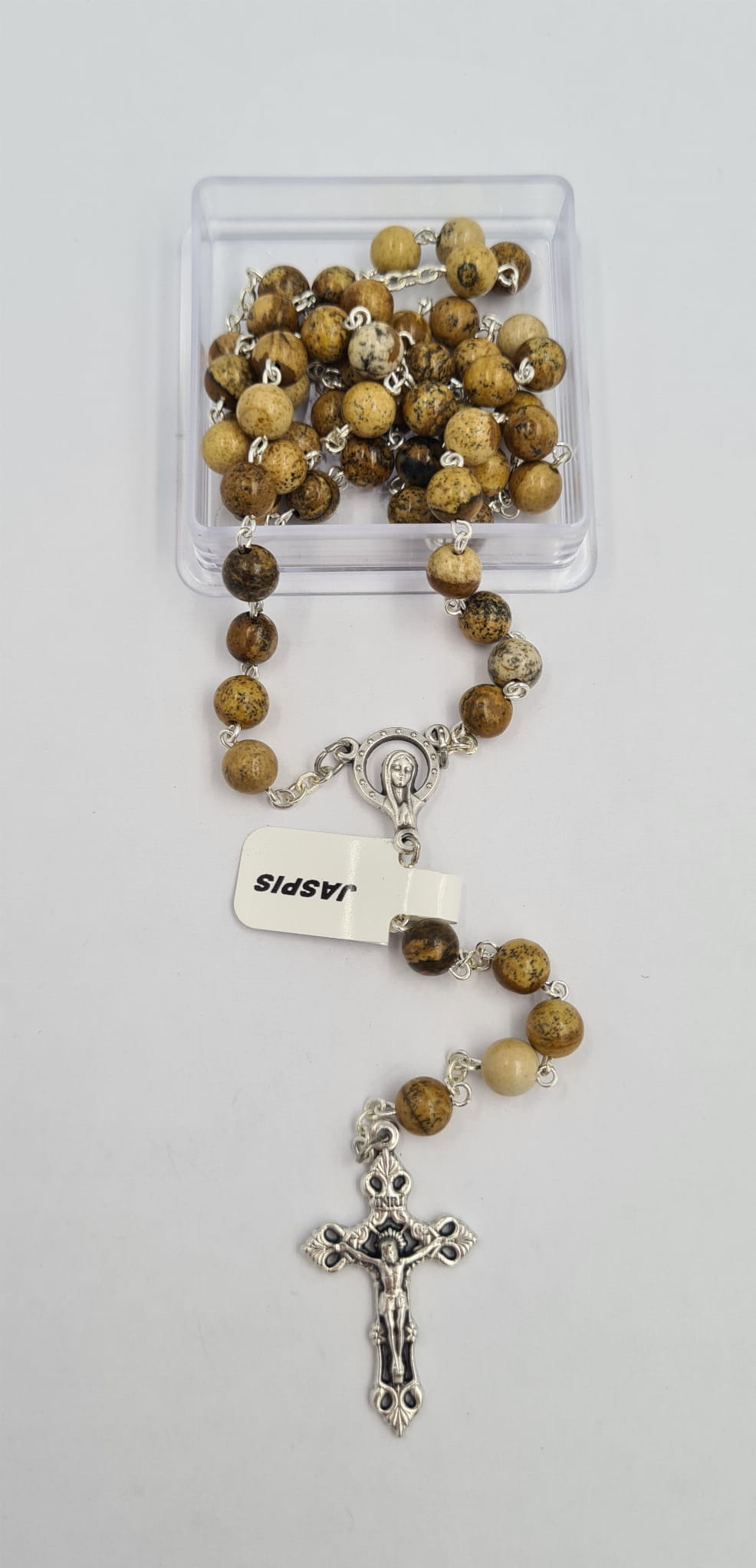 Każdy różaniec zapakowany w przezroczyste pudełeczko ułatwiające przechowywanie.