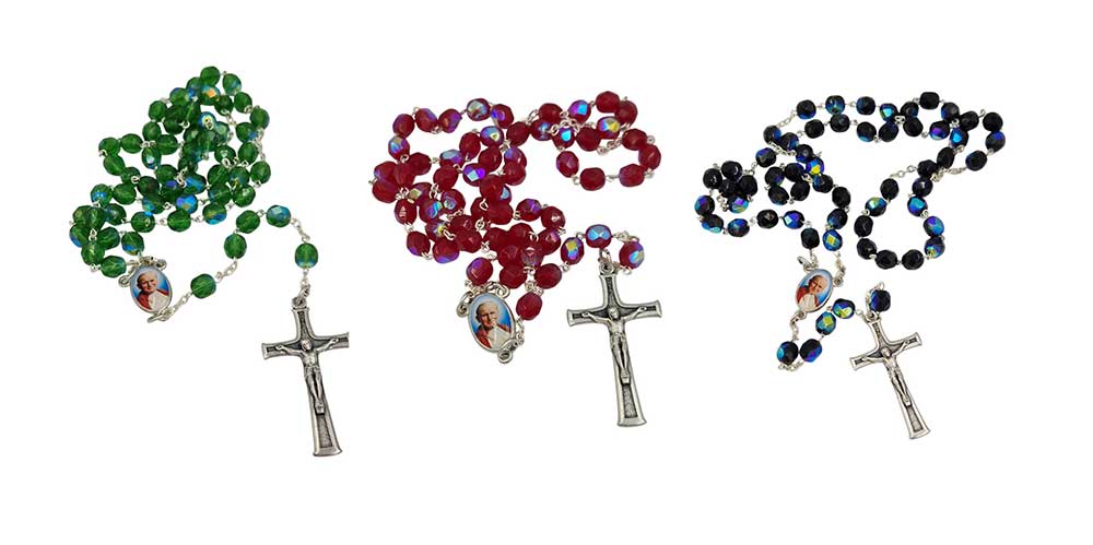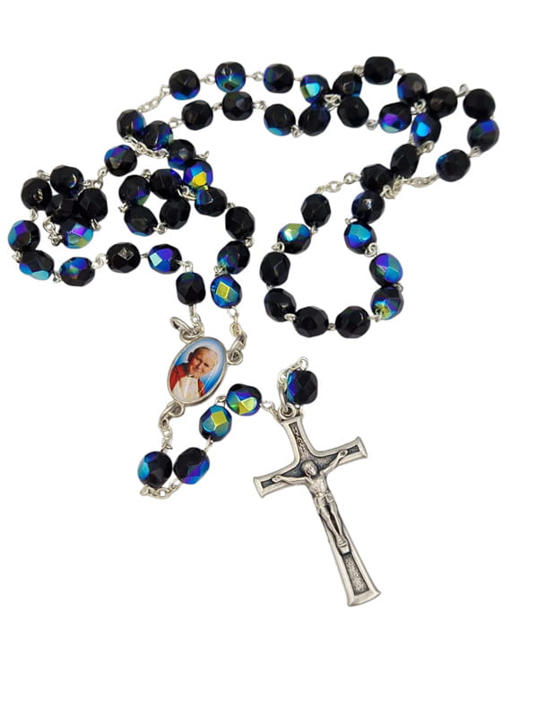 Łącznik z wizerunkiem Świętego Jana Pawła II - wklejka żywiczna kolorowa.